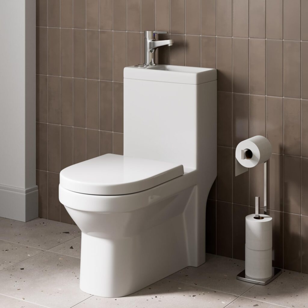 2 in 1 Toilet Basin Combo Unit with Basin Mixer Tap and Close Coupled Toilet Seat